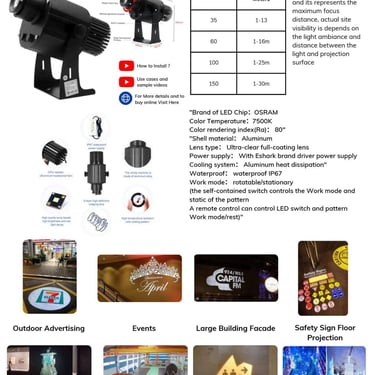 The Esharktek Gobo Projector is a professional lighting tool used to project high-quality images, logos, patterns, or designs onto various surfaces, it offers several unique advantages that make it ideal for creating stunning, attention-grabbing visual displays and banners/posters.