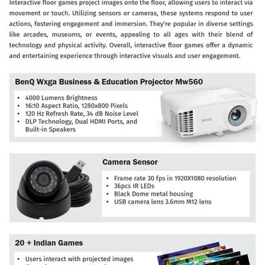 Whether in classrooms, museums, corporate settings, or retail environments, this advanced system uses motion-sensing technology to create captivating, real-time interactions. The high-definition visuals and rich content library ensure every projection is both eye-catching and engaging, perfect for making educational lessons more immersive, brand messages more impactful, and exhibitions more interactive.