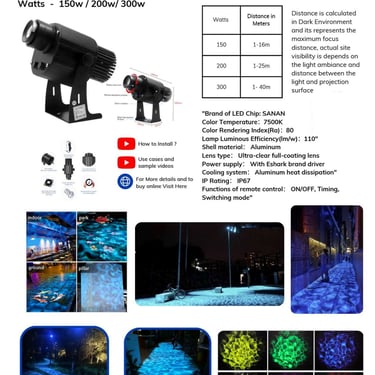 The Esharktek Water Wave Effect Gobo Projector is a cutting-edge lighting tool designed to create a captivating water ripple effect for a variety of entertainment for creating master piece garden, landscape lights , large areas to convert park and beaches.